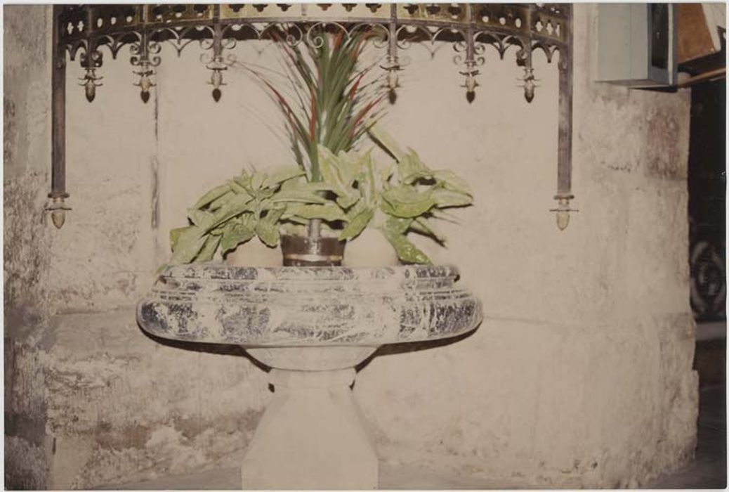 Dans le bas-côté gauche contre le pilier nord-est du choeur de l'église.