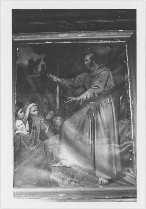 L'ensemble date du début du XVIIIe siècle mais le tableau date du XIXe siècle. En souvenir du service rendu à la reine Clotilde, ou parce qu'il délivrait les prisonniers, saint Léonard passait aussi pour délivrer les femmes en couche qui avaient recours à son intercession en cas d'accouchement laborieux. Peut-être que cette scène fait elle partie allusion à ce patronage.