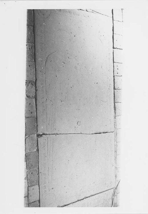Epitaphe gravée : Cy gist [...] lequel trespassa le IIIe jour de Septembre l'an mil Vc XXXII [...]. en son vivant feme [...] laquelle tespassa le XIe jo de er mie Vc XXXIII.