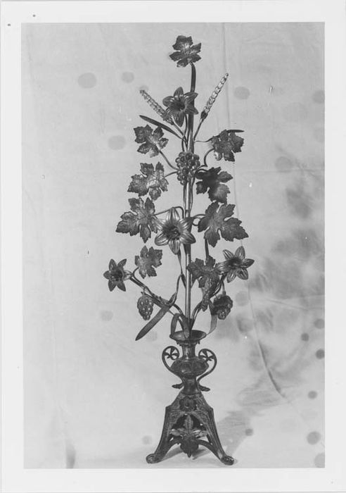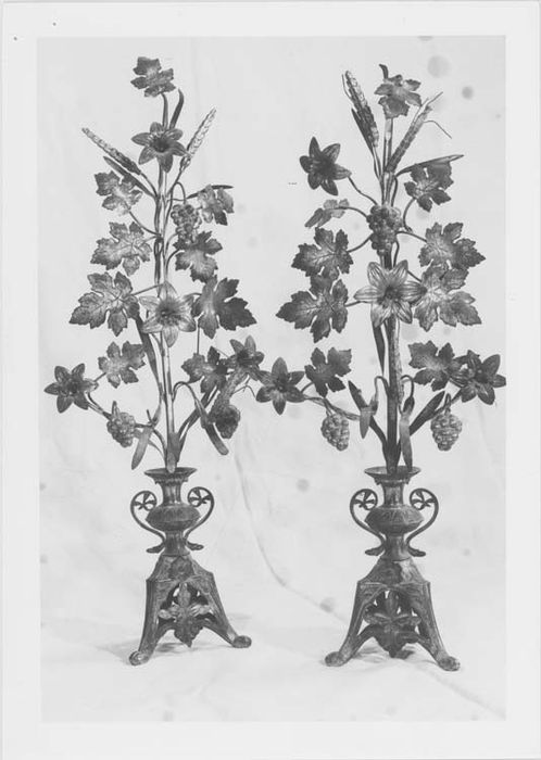quatre girandoles : décor de feuillage, épi de blé et grappes de raisins.