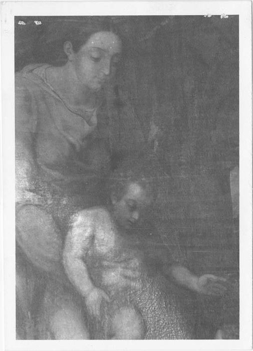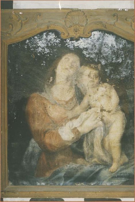 Copie de Van Dyck, d'après le conservateur du musée de Lille (1990) : la Vierge est représentée avec un certain maniérisme, les yeux exorbités. Le cadre date du XVIIIe siècle.