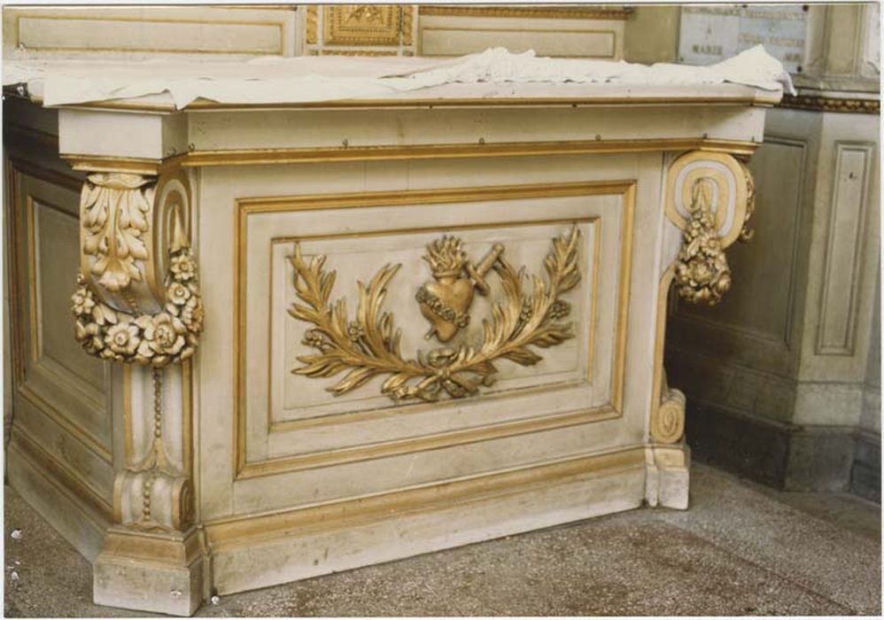La porte du tabernacle est ornée de deux guirlandes nouées.