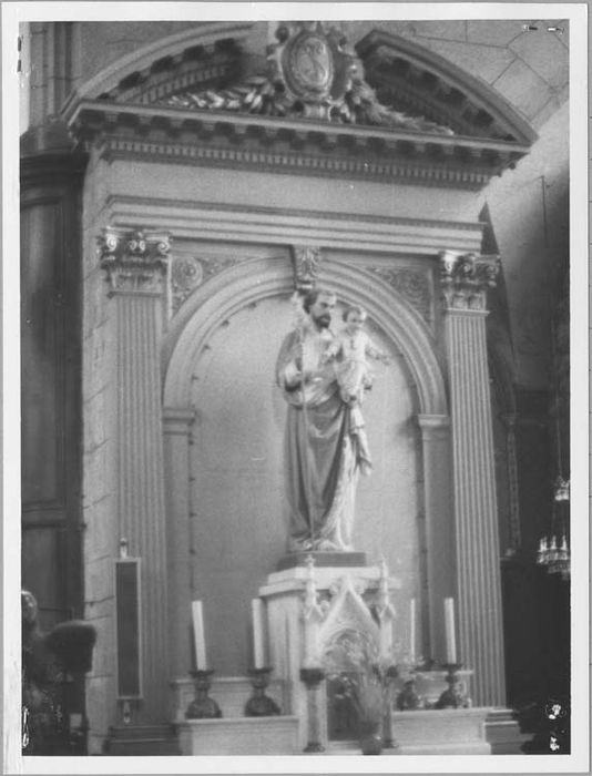 Entre la nef et le bas côté de l'église, 3e travée contre le pilier.