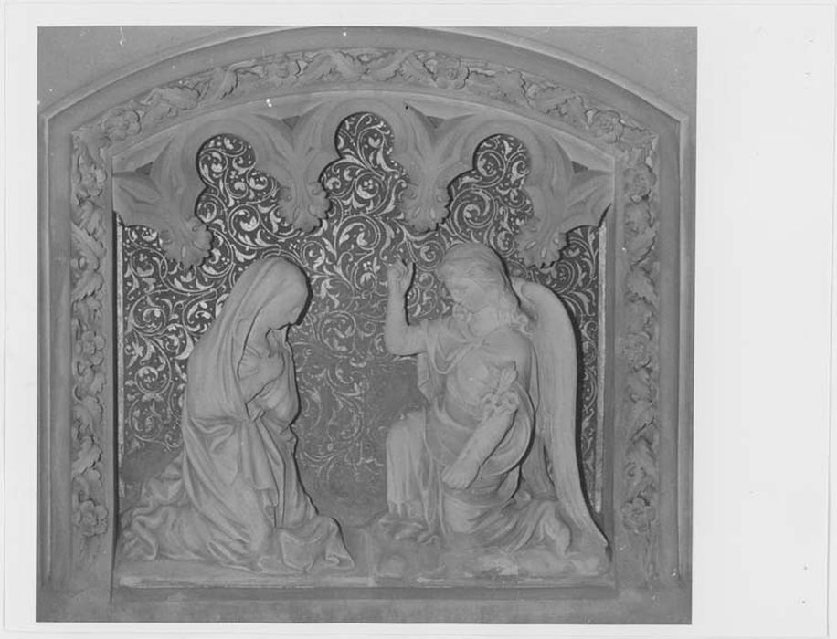 maître-autel ; panneaux sculptés : Annonciation, David jouant de la Harpe ; statues (4) : Sainte Thérèse, Saint Vincent de Paul, Saint François d'Assise, Sainte Geneviève