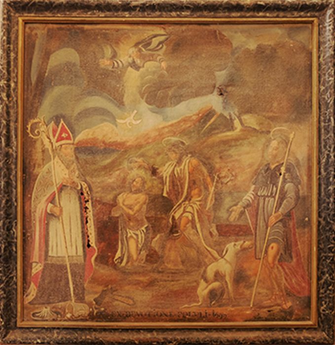 tableau ex-voto : le Baptême du Christ en compagnie de saint Roch et de saint Aubin