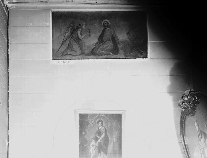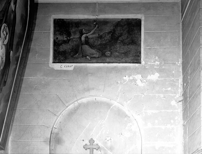 peintures monumentales du transept : Adam et Eve chassés du Paradis terrestre, le Baptême du Christ, Christ au Jardin des oliviers (le), sainte Marie-Madeleine au désert