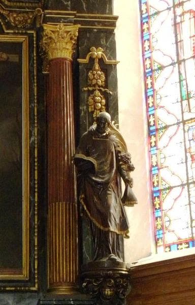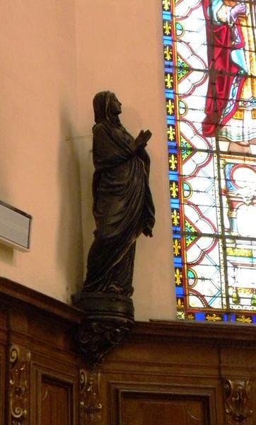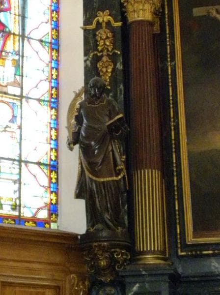 Les six statues sont situées de part et d'autre du retable, au-dessus des boiseries du choeur. A droite, Saint Etienne (sur un console), la Vierge et Sainte Geneviève. A gauche, Saint Vincent (sur une console), Saint Jean et Saint Denis (ou saint Augustin).