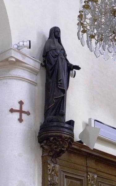 six statues : Vierge, Saint Denis, Saint Jean, Sainte Geneviève, Saint Etienne et Saint Vincent