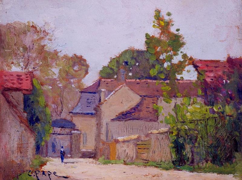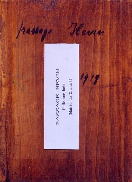 Signature (peinte, en bas à gauche) : C. Pape ; inscription et date (au revers) : Passage Hévin an 1919.