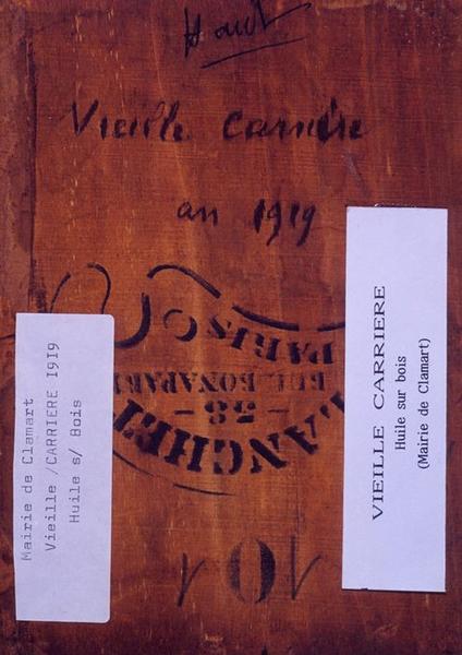 Signature (peinte, en bas à gauche) : C. Pape ; inscription et date (au revers) : Vieille carrière an 1919.