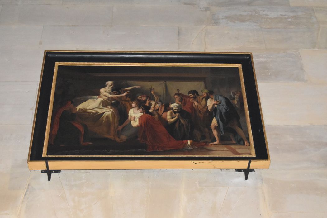 Fiche Conservation des antiquités et objets d'art des Hauts-de-Seine : CAOA92_000135 ; archives de l'église : inventaire de 1906, 184, note du père Baron : Le 15 mai 1858, un tableau représentant Jacob bénissant ses enfants a été donné à l'église par Mr et Mme Thomas, paroissiens de Rueil. Il est l'uvre de feu Mr Charles Dutron-Lafond (chev.de la leg d'h.) grand-père maternel de Mme Thomas. Ce tableau a obtenu la médaille d'or en 1805 sous le règne de Napoléon Ier.