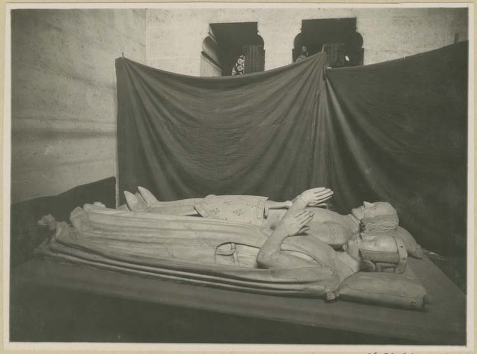 Statue funéraire. Dalle funéraire à effigie en relief. Emplacement incertain : bas-côté Nord ou choeur, sur le pourtour ?.