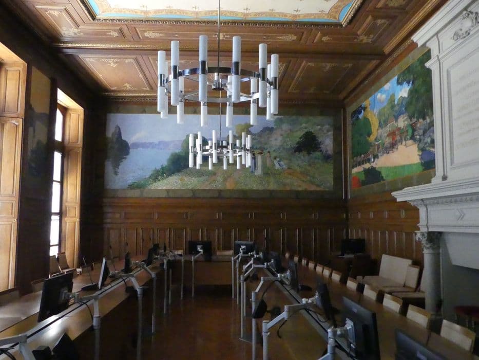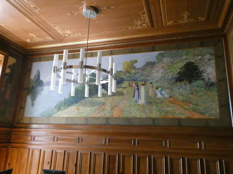 Dans la salle du Conseil Municipal de la mairie.