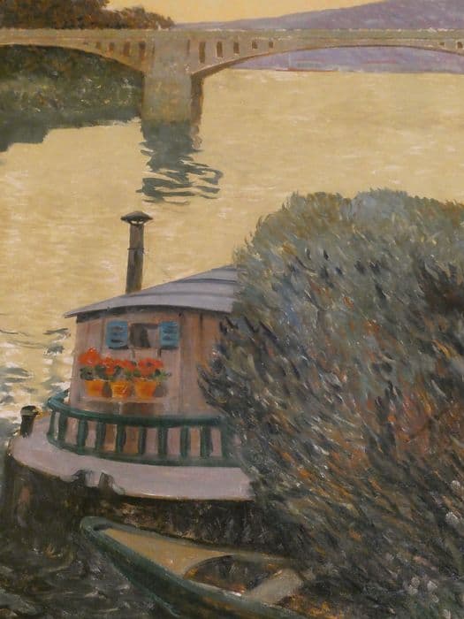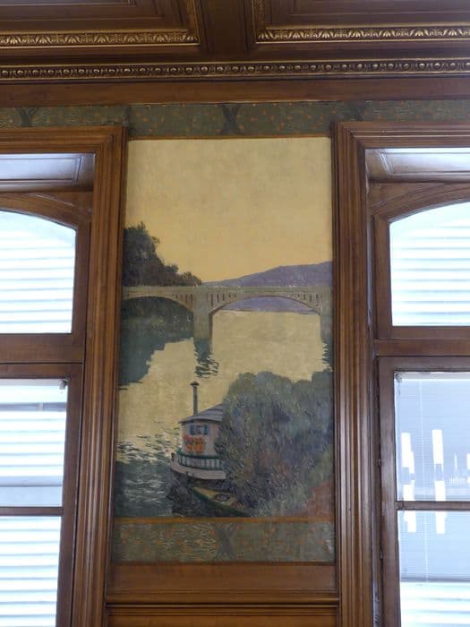 Petit panneau décoratif peint sur toile marouflée placé entre deux baies faisant partie d'un ensemble de 9 compositions.