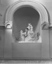 POP | Plateforme ouverte du patrimoineEnsemble de trois sculptures en plâtre intitulé Le Rosaire : saint Dominique aux pieds de la Vierge à l’Enfant