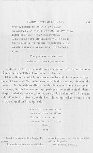 Claude Hibout, procureur fiscal et fermier de M. d'Ormesson, est mort en 1721.