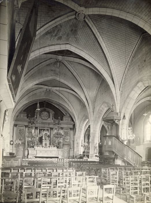 Quatre commissaires sont nommés le 23 nivose : pour faire le toisé des menuiseries et boiseries de la cy devant église ; Le grand autel en bois de chêne de hauteur et de largeur y compris les colonnes et ornements cintrés dans tout le pourtour dudit autel et de chaque côté y compris les deux portes, l'une faisant une armoire et l'autre une ouverture pour aller à la sacristie produisent soixante seize toises six pieds huit pouces huit lignes (Inventaire du 27 nivose an II).