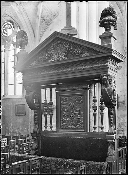 Siège et dossiers sont un remontage du 19e siècle. dossier et baldaquin sculptés.