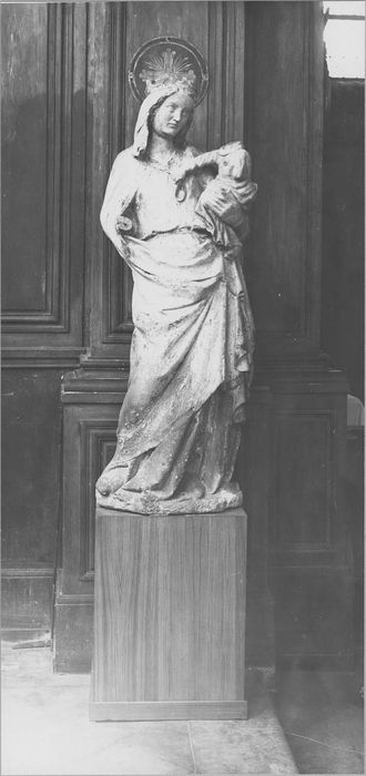 Anciennement placé au-dessus du banc d'Oeuvre et depuis, dépôsé à la mairie.