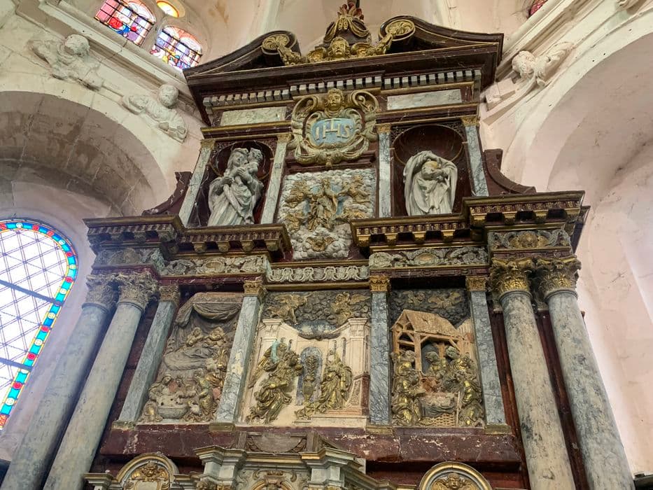 POP | Plateforme ouverte du patrimoineretable du maître-autel et ses 4 bas-reliefs : l'Annonciation, l'Assomption, la Nativité et l'Adoration des bergers