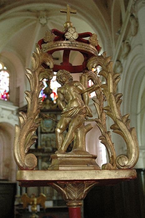 bâton de procession de confrérie : saint Sébastien