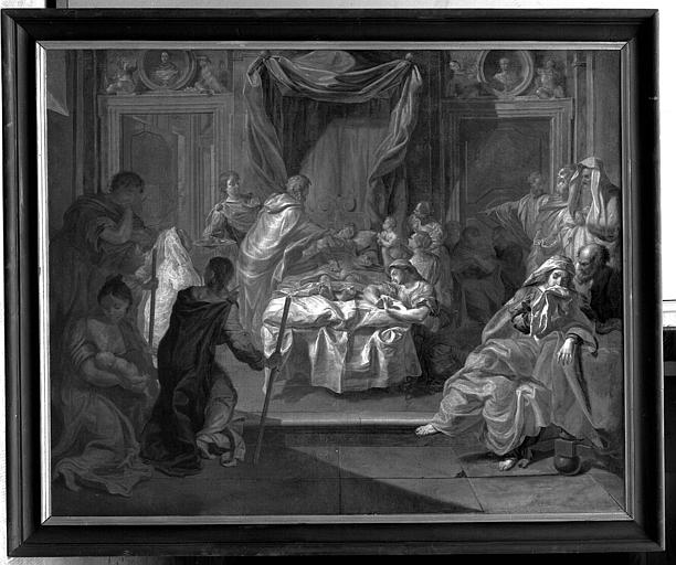 Date : 1723 (Eucharistie). Date : 1724 (les six autres toiles). Armoiries : armoiries du duc de Bouillon (Baptême). Remis en 1800 à l'église Notre-Dame.