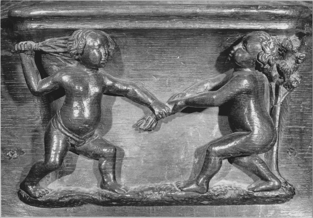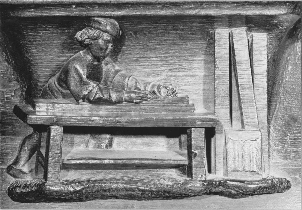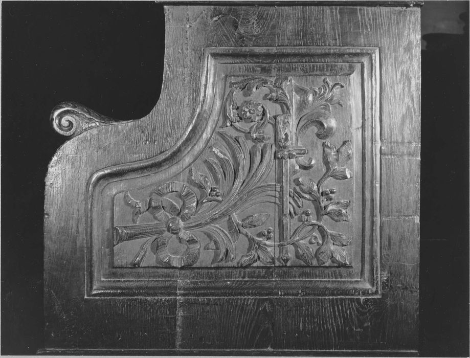Il y a six miséricordes du 16e siècle réutilisées dans ces stalles du 17e siècle.