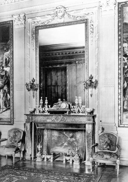 La paire de chenêts en bronze doré, attribués à Dambière, 18e siècle, h = 54,5 ; l = 52 ; pr = 16 a été acquis par l'Etat par dation en date du 2 juin 2010 (n° d'inventaire DPOM 1232-1 et 2-) déposés et présentés au château de La Roche-Guyon (convention entre la DRAC Ile-de-France et l'EPCC du château). (source : bordereau de récolement du 31/03/2014).