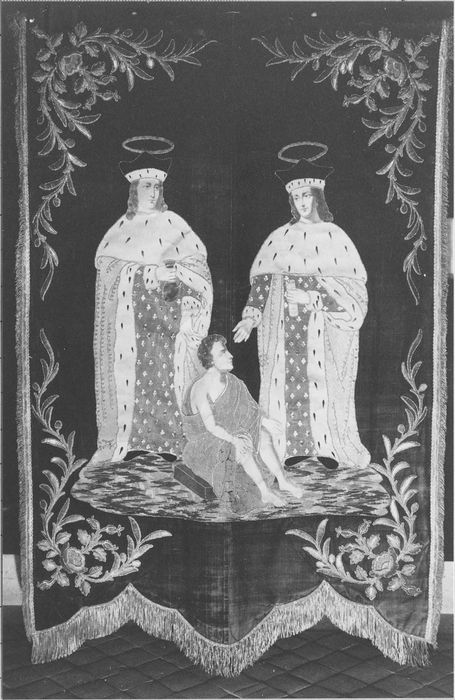 POP | Plateforme ouverte du patrimoinebannière de procession : malade assis entre saint Côme et saint Damien (un)