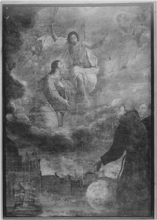 tableau : Saint François et saint Dominique arrêtant les traits de la justice divine