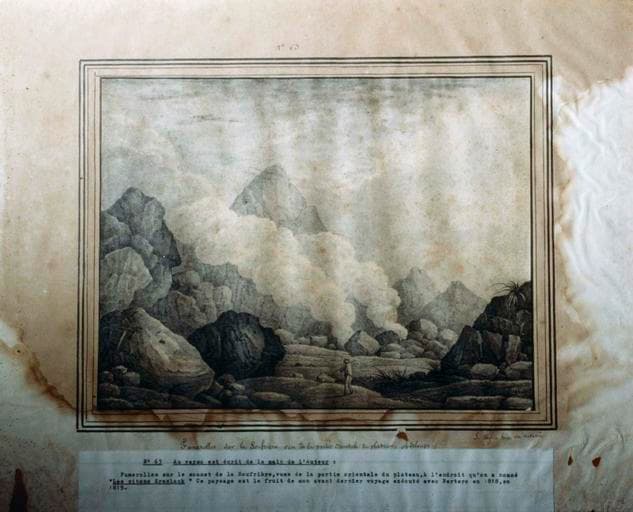 POP | Plateforme ouverte du patrimoinedessin : Fumerolles sur la Soufrière vues de la partie orientale du plateau, Guadeloupe