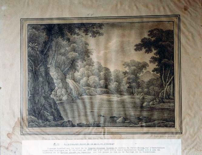 POP | Plateforme ouverte du patrimoinedessin : Dans la grande rivière Goyaves au quartier de Petit-Bourg habitation Hurel, Guadeloupe