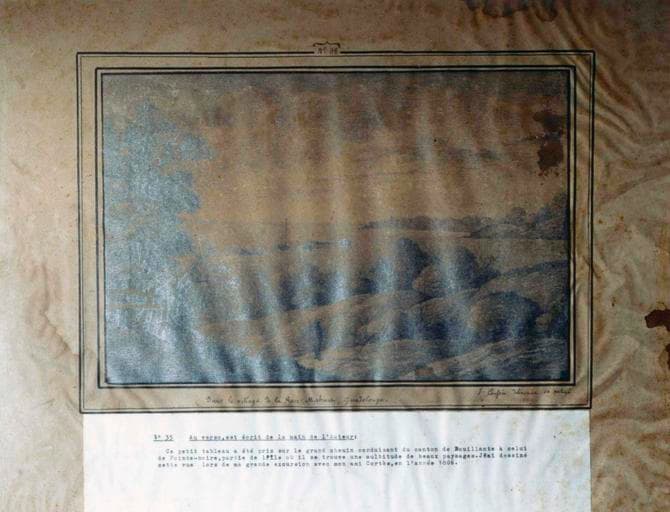 Dessin à la mine de plomb sur papier vergé. Le montage qui l'encadre date de 1951.