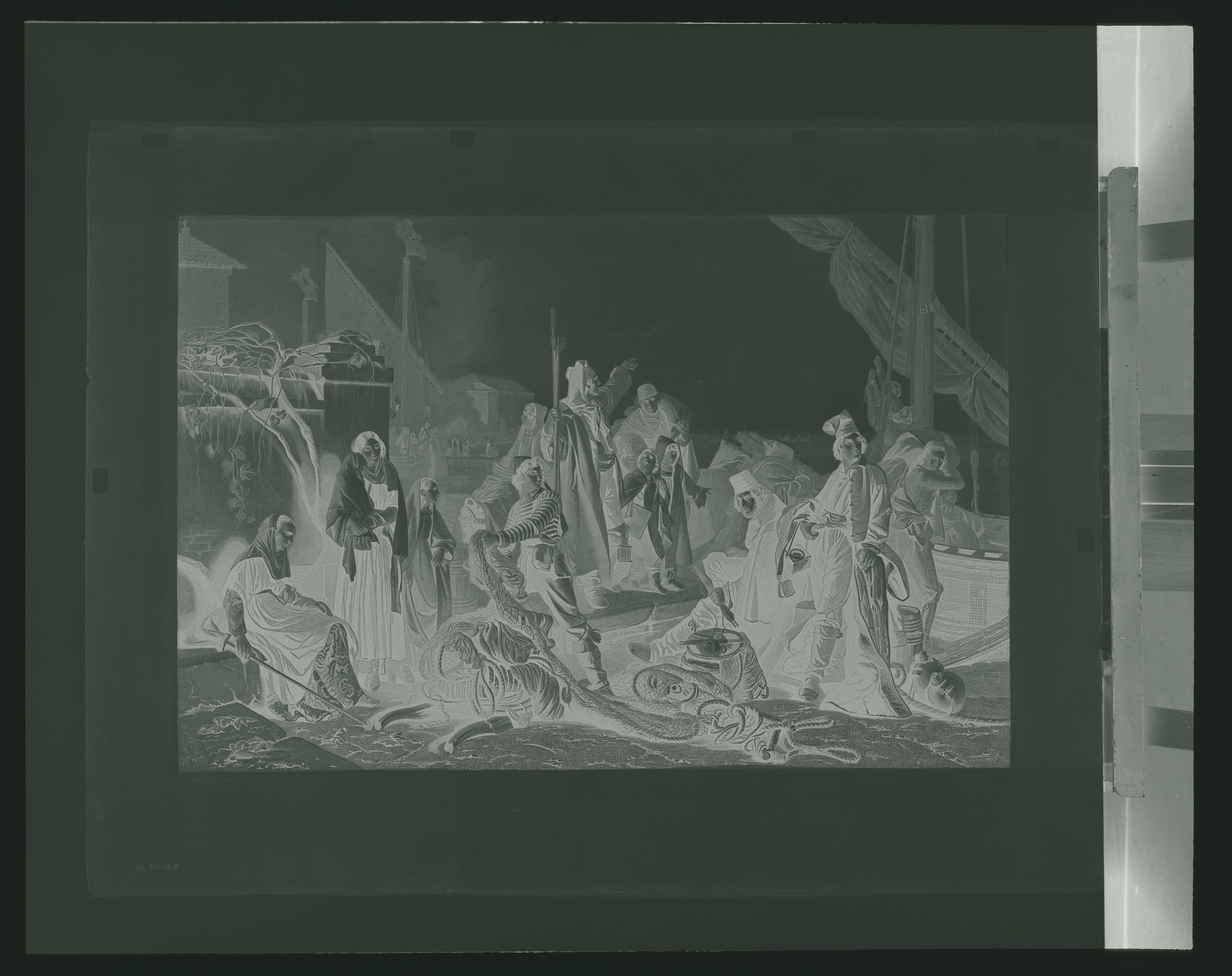 Au verso, gravure d'après la peinture de Léopold Robert : "Les Pêcheurs/de l'Adriatique/ Paris Publié par Goupil et Vibert, Boulevard Montmartre rue de Lancry 7" et "Gravé par Z. Prévost" et "Imprimerie de Goupil & Vibert" ; écrit à la main "AM REC 10 D".