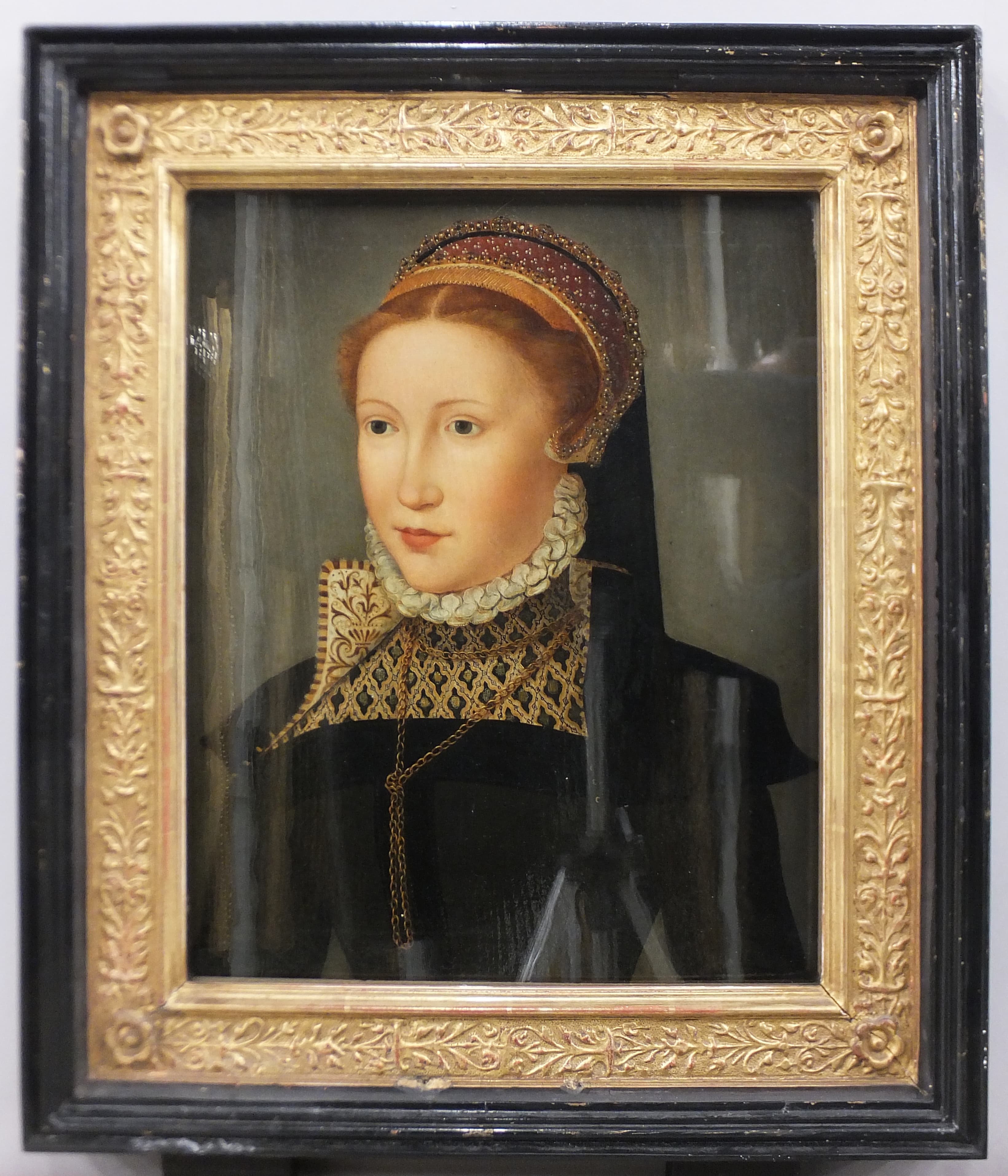 portrait d'inconnu (femme, en buste, de trois-quarts, parure, col)