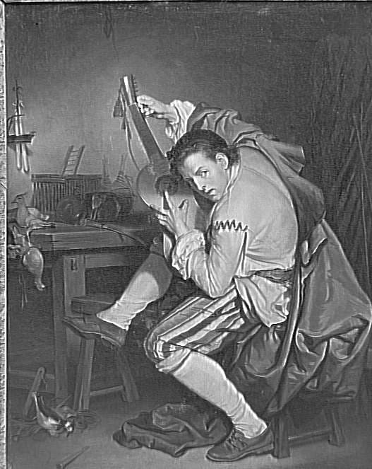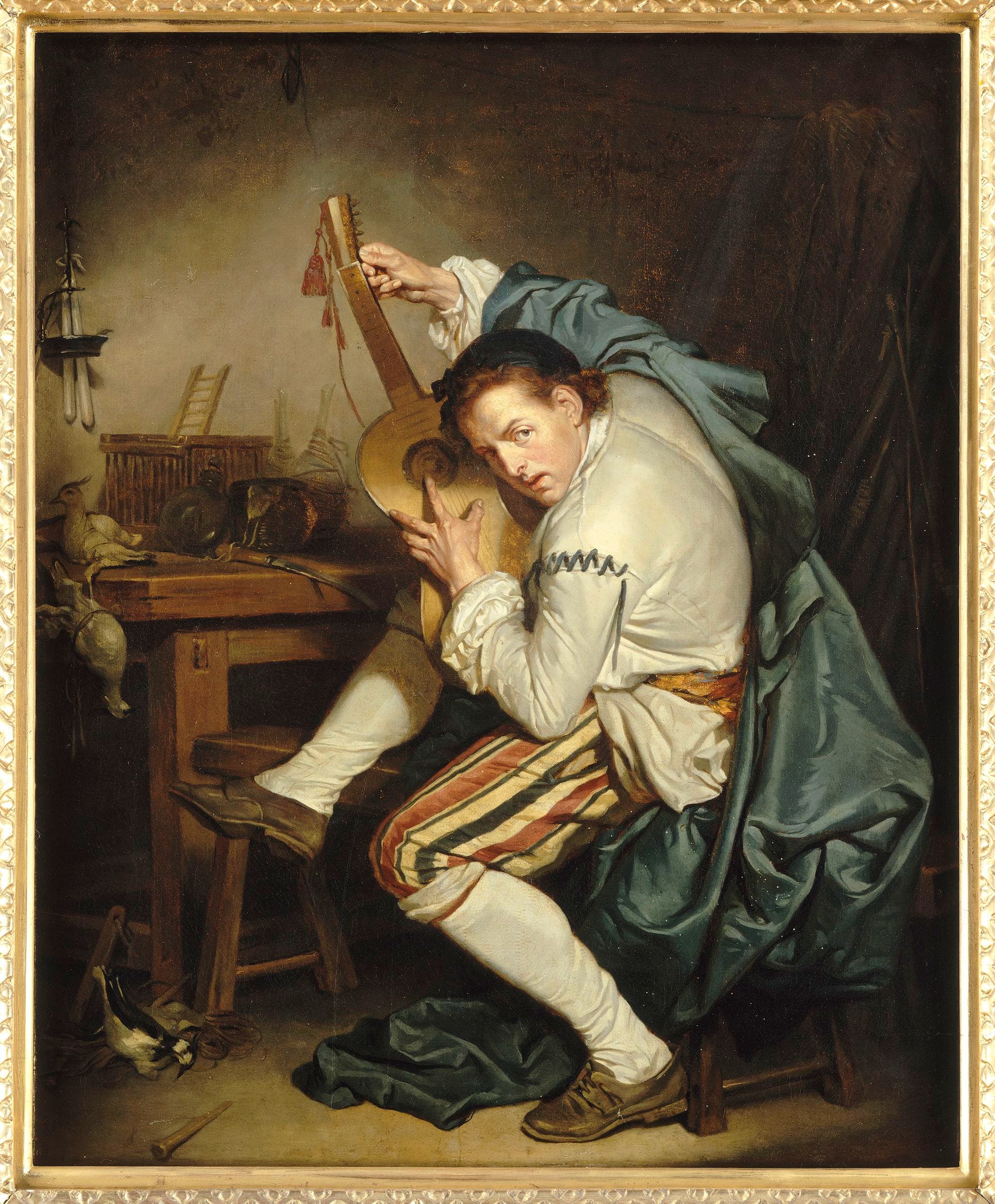 Un oiseleur qui, au retour de la chasse, accorde sa guitare