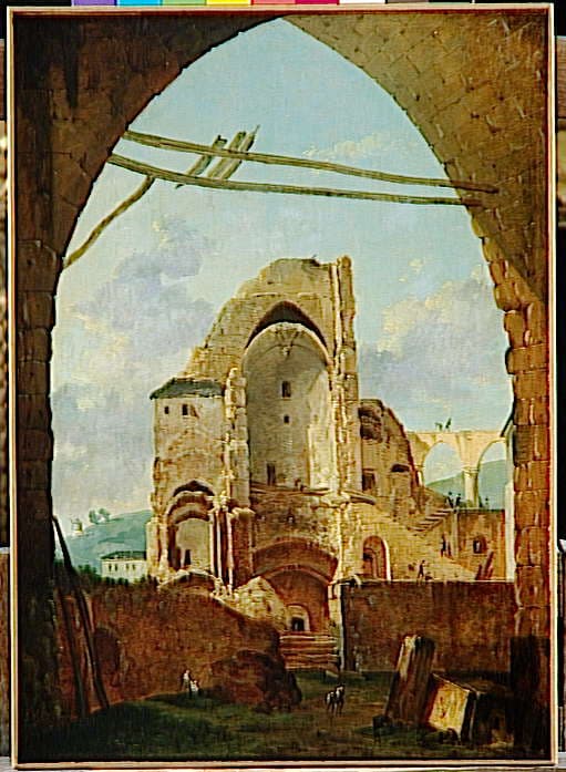 Cette œuvre est peut-être une réplique, avec variantes, d'un tableau, signé des initiales du peintre, de la collection David-Weill : ce dernier est saisi par l'Einsatzstab Reichsleiter Rosenberg, restitué par la commission de récupération artistique (1) et catalogué par Georges Wildenstein, dans "Un peintre de paysage au XVIIIe siècle", Paris, 1923, ainsi que sous le numéro 11, repr. ; exposé au Salon de l'An XII, n° 330, gravé pour l'Athenaeum de Demaison d'après un dessin de Mlle Quevanne.