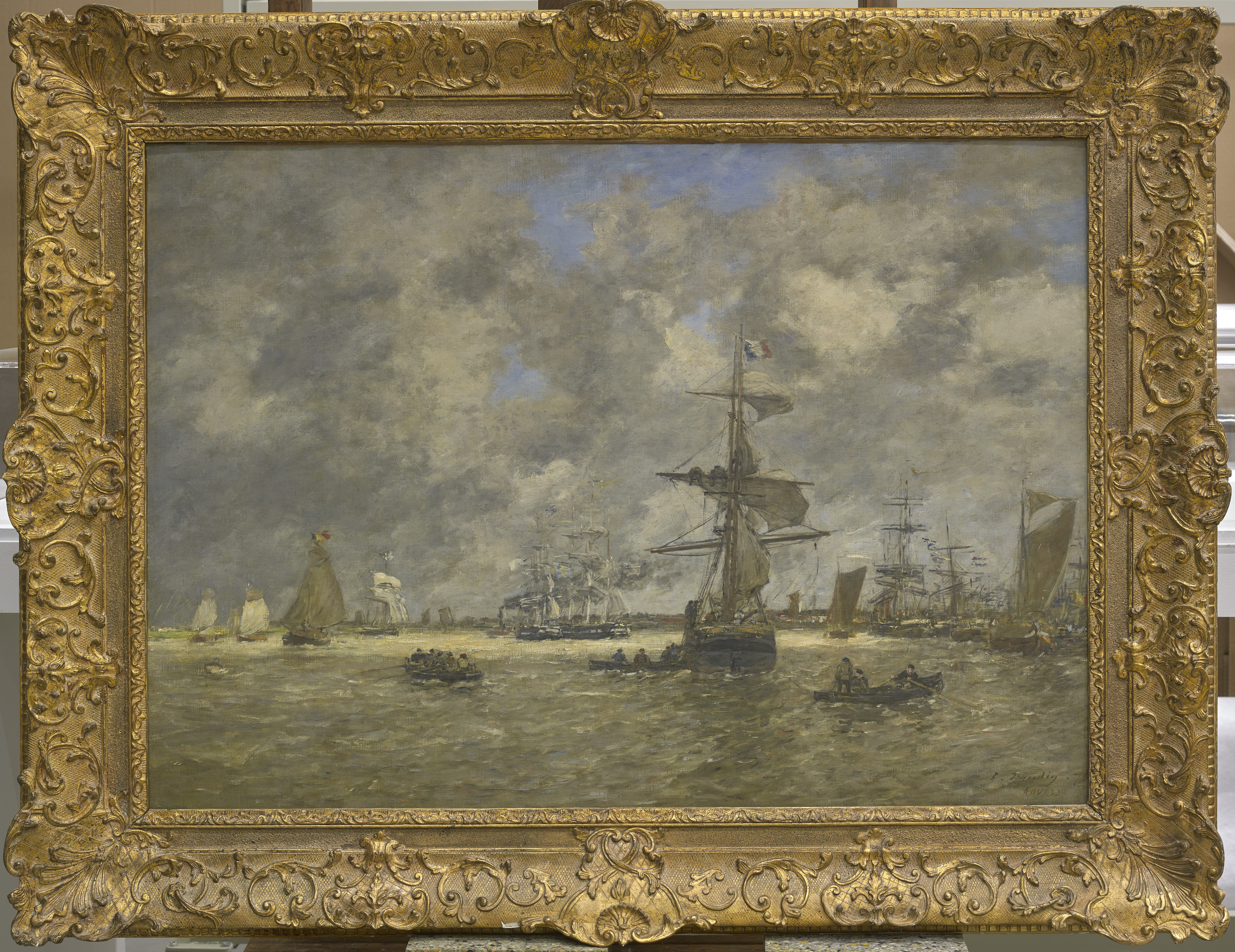 Le tableau est acheté à Eugène Boudin par M. Detrimont en mai 1883 ; il est présenté à la vente de la collection C. Coquelin, à Paris, galerie Georges Petit, 9 juin 1906, sous le n° 8, repr., et adjugé 5 000 F à M. Beau (1). Il est à nouveau présenté à la vente Raynaly, à l'hôtel Drouot, Paris, le 19 décembre 1923, sous le numéro de lot 4, et adjugé 15 000 F à la galerie Georges Petit (2). Puis il est présenté à la vente du Captain John Audley Harvey, à Londres, chez Christie's, le 30 mars 1928, sous le numéro de lot 69, reproduit dans le catalogue, et acquis £ 145,10 par Bernheim-Jeune, de Paris (selon Schmit, 1973) (3).