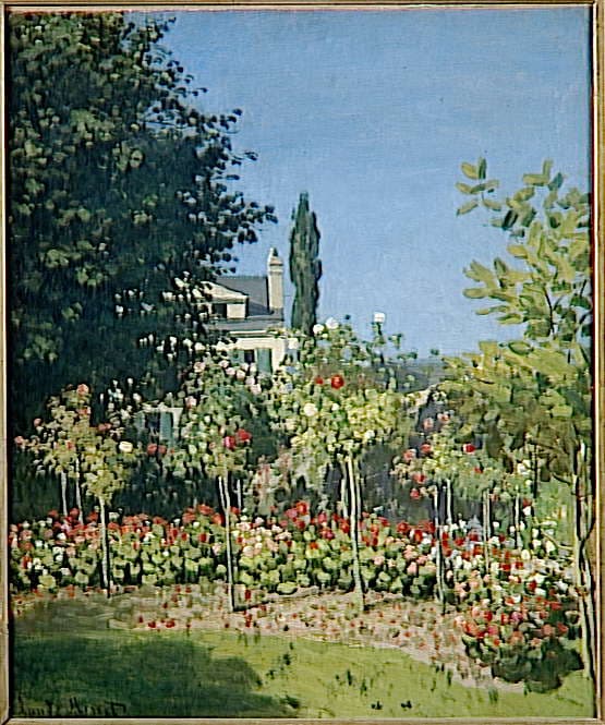 paysage (jardin, arbre, fleur, maison, effet de soleil, Sainte-Adresse)