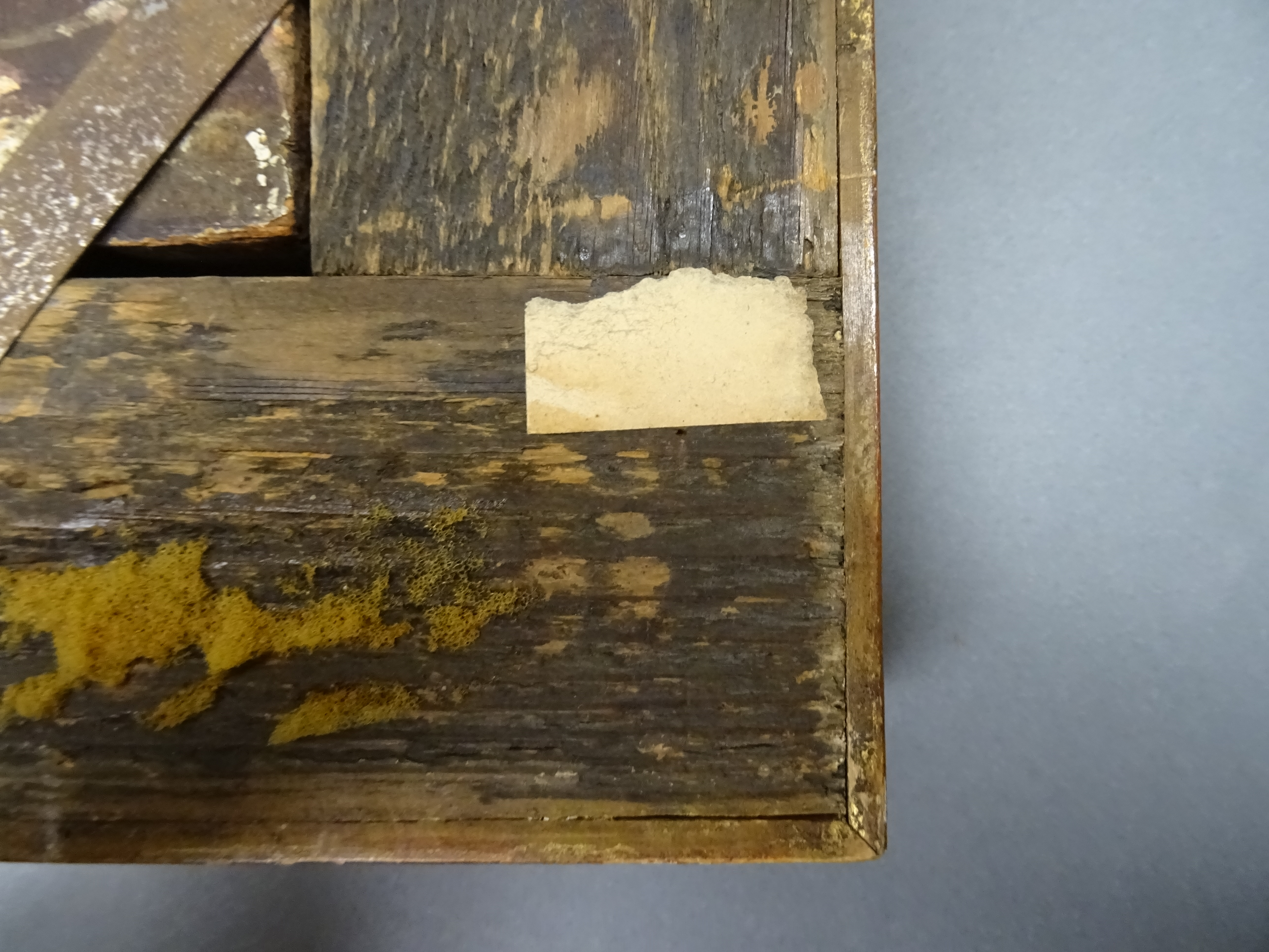 Sur le montant inférieur : Étiquette lacunaire illisible ; trace d'étiquette détachée.