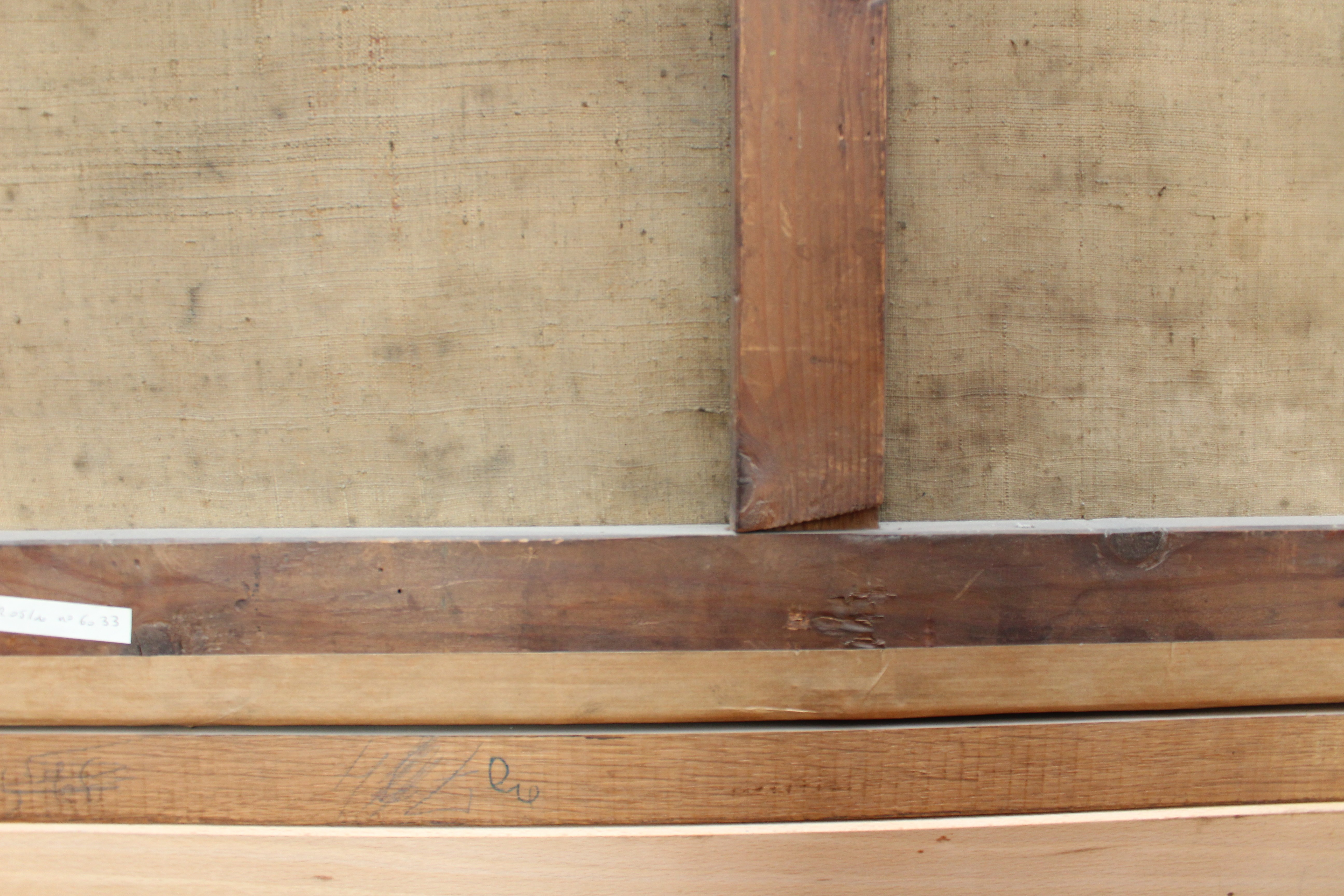 -Montant gauche : Au crayon de graphite "3" et "60b".