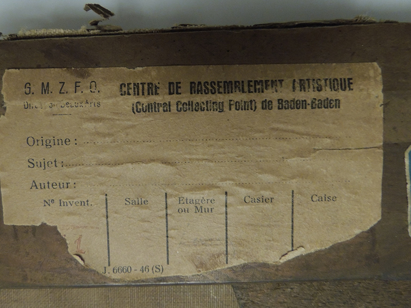 Le tableau se trouve encore à Cologne en 1949 (4). Il est retrouvé à Langenau (5). Il est transporté au Central Collecting Point de Baden-Baden.