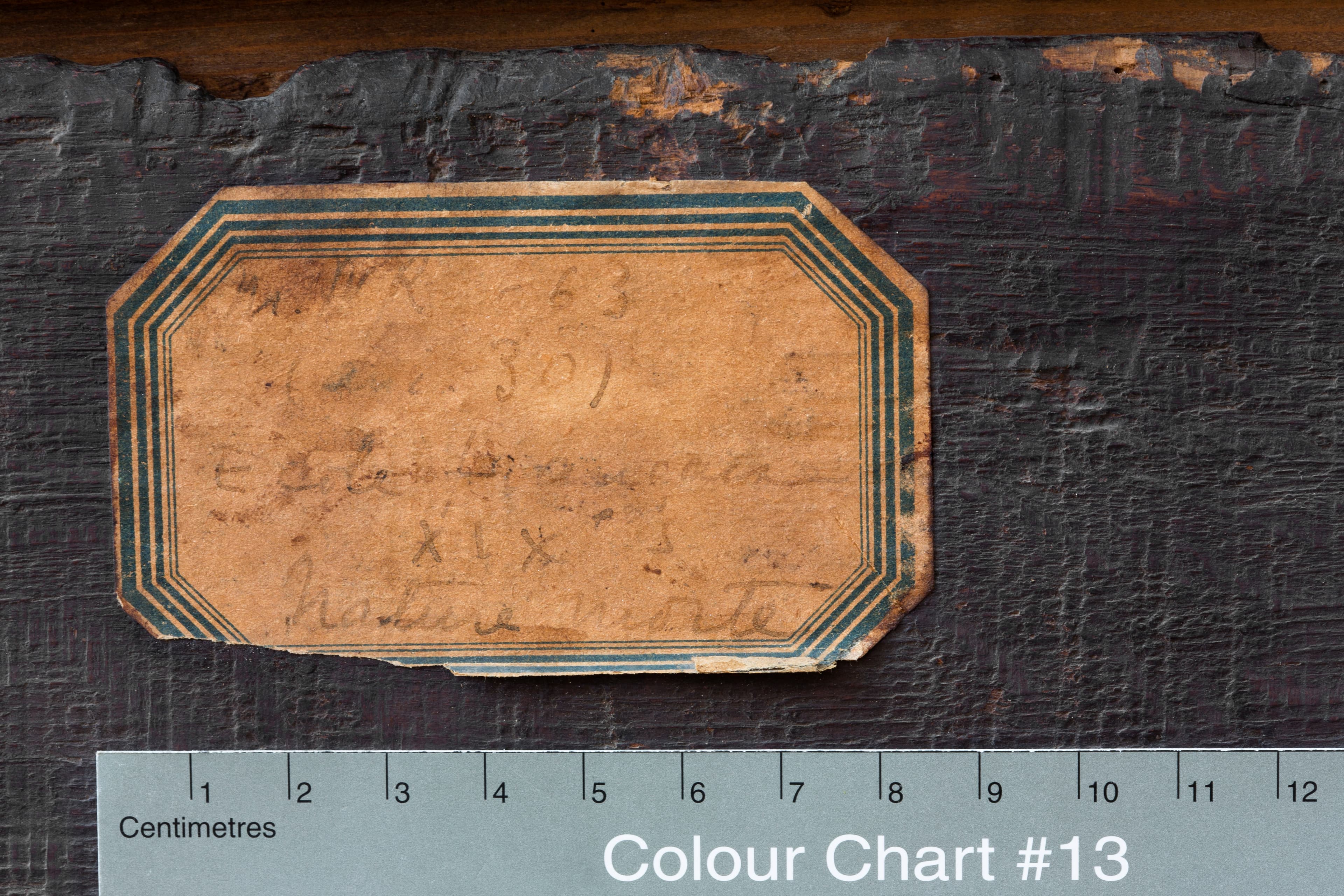Considéré en 1941 comme une nature morte de G. J. J. van Os, le tableau, d'attribution problématique, a été rattaché aux écoles française, allemande ou hollandaise du XIXe siècle. On peut penser aux œuvres de Doncre, Claudot ou de Louis Vidal.