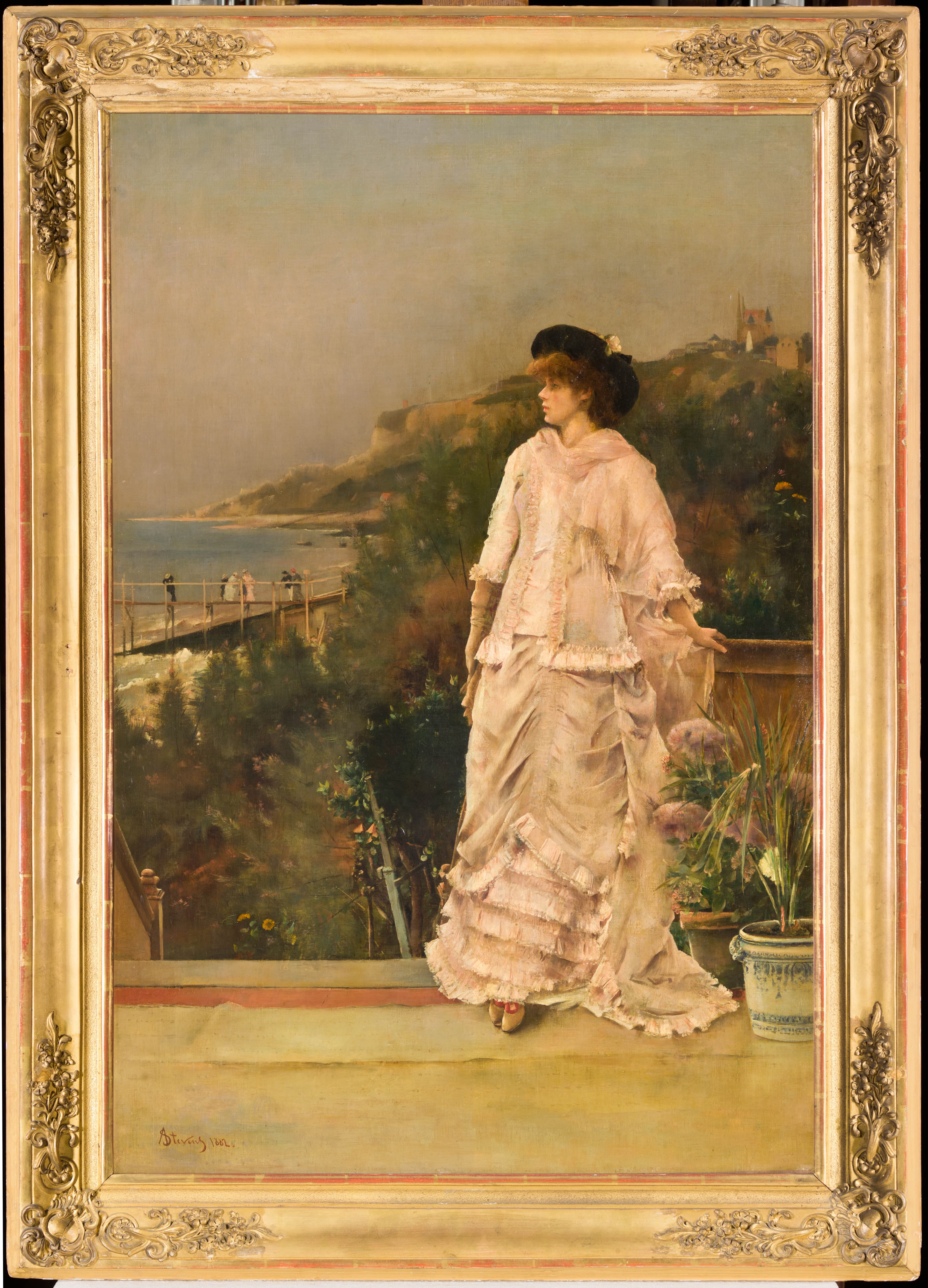 Portrait de femme en pied sur une terrasse près de la mer - POP