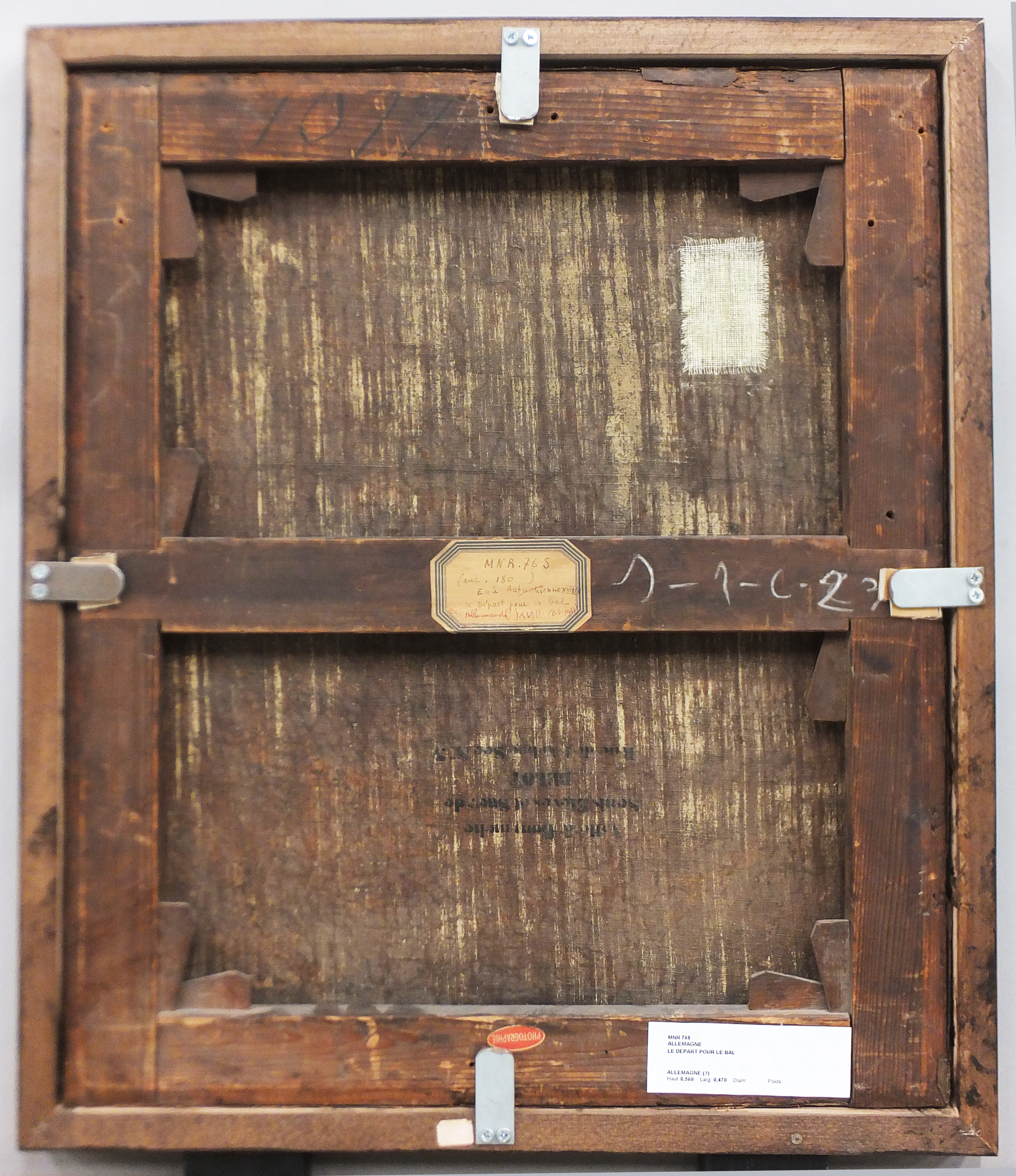 En 1980, la restauration du tableau a permis de découvrir au revers une autre toile (MNR 765 bis, école indéterminée).