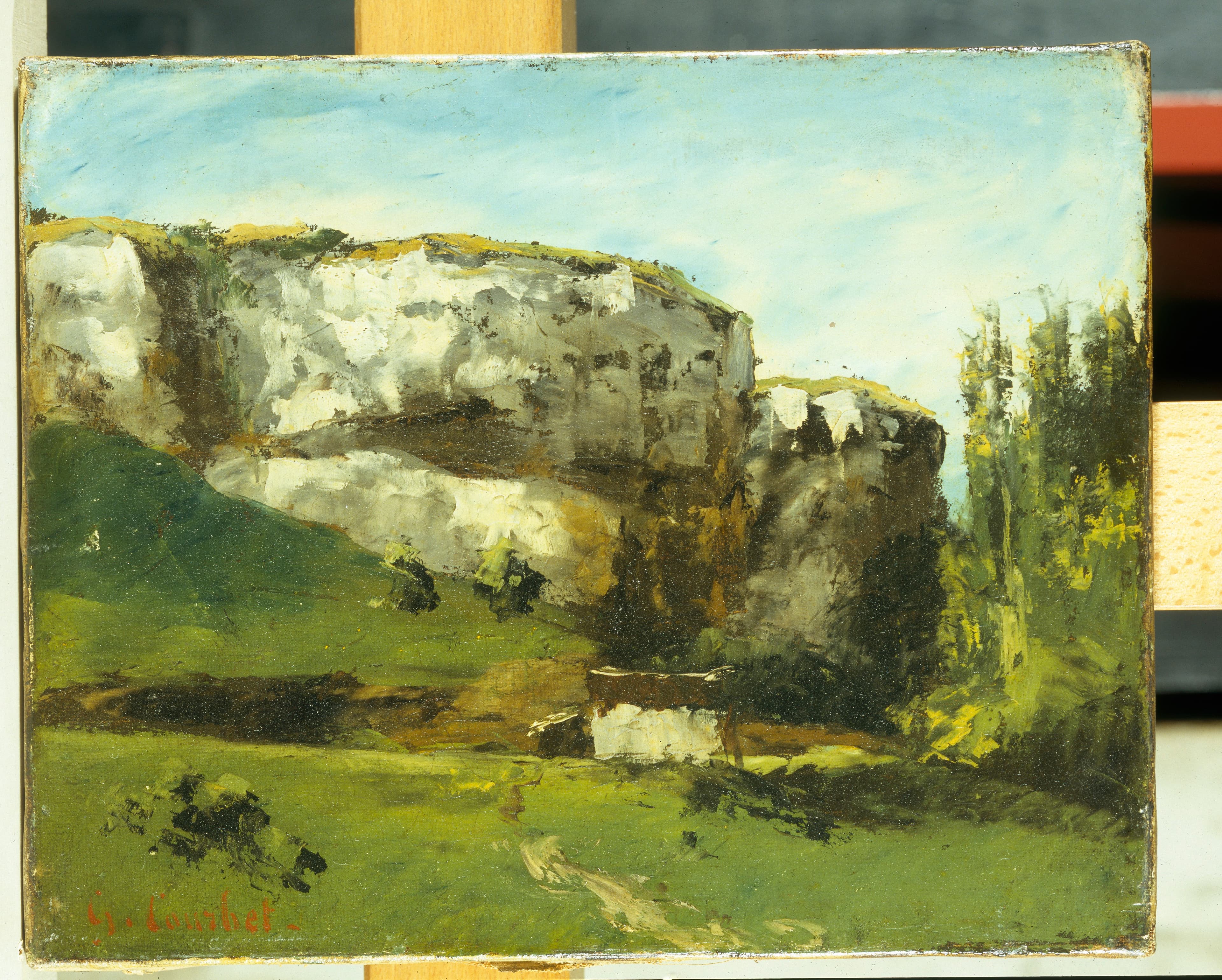Signé en bas à gauche en lettres rouges : « G. Courbet »