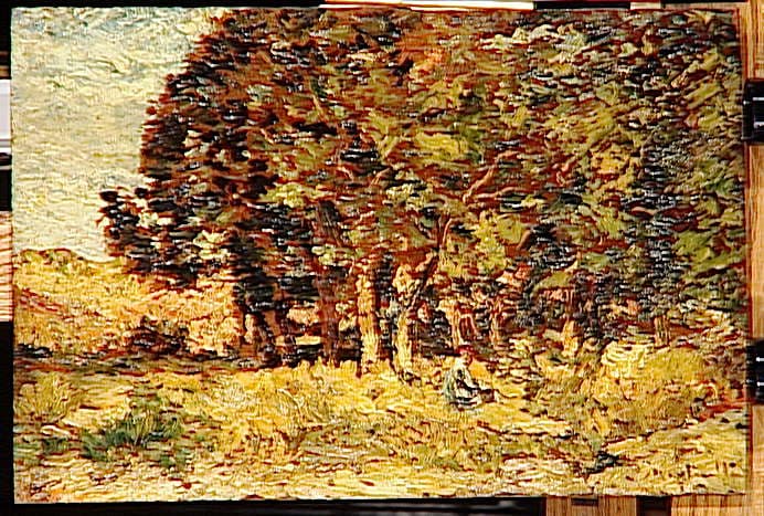 paysage (forêt, chêne, arbuste, personnage)