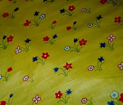 Toile, rouleau, fleurs stylisées sur fond jaune