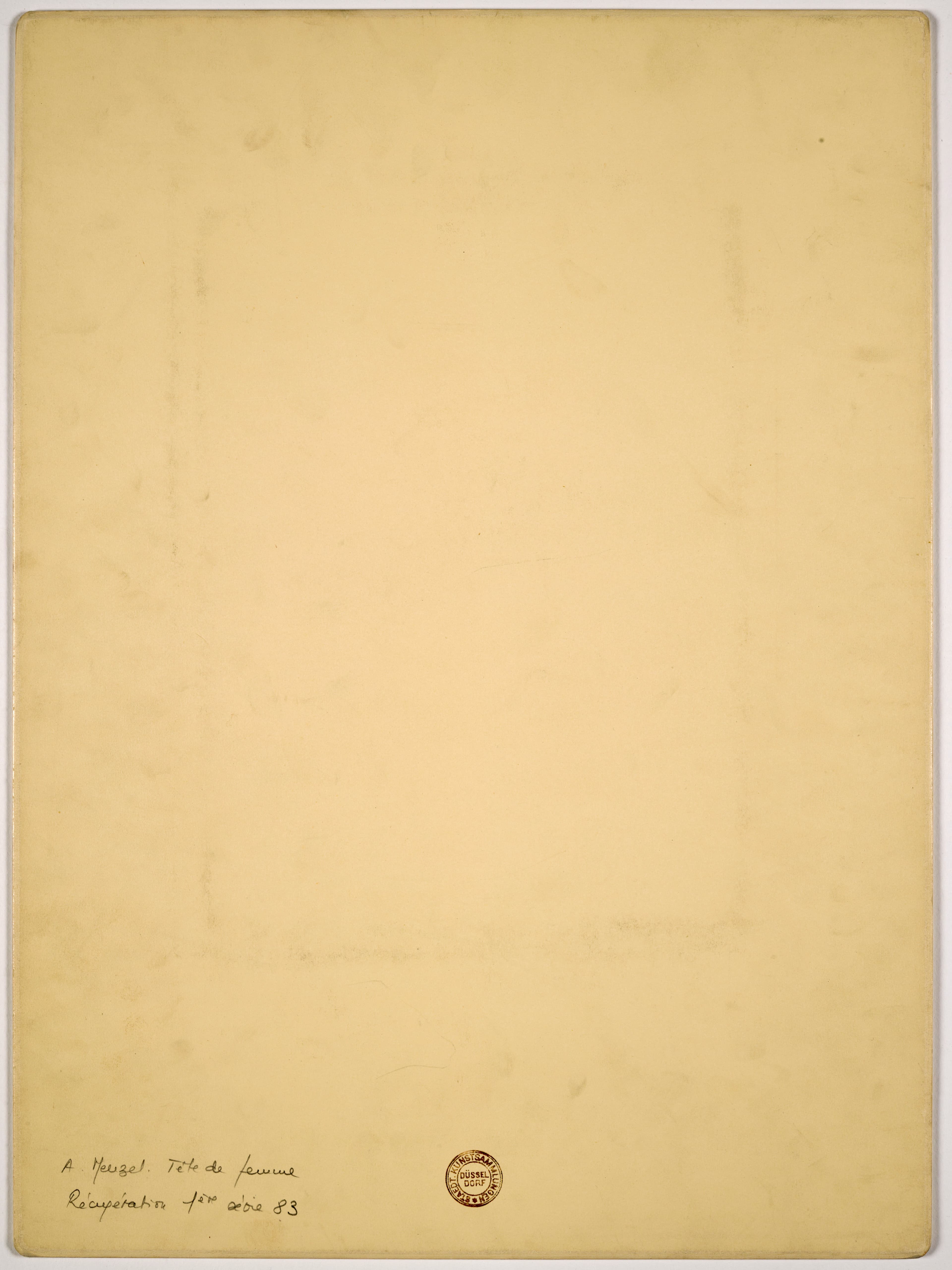 Au verso : Tampon "Staedt. Kunstsammlungen/Düsseldorf" ; en bas à gauche, au crayon "A. Menzel. Tête de femme/Récupération 1ère série 83".