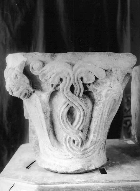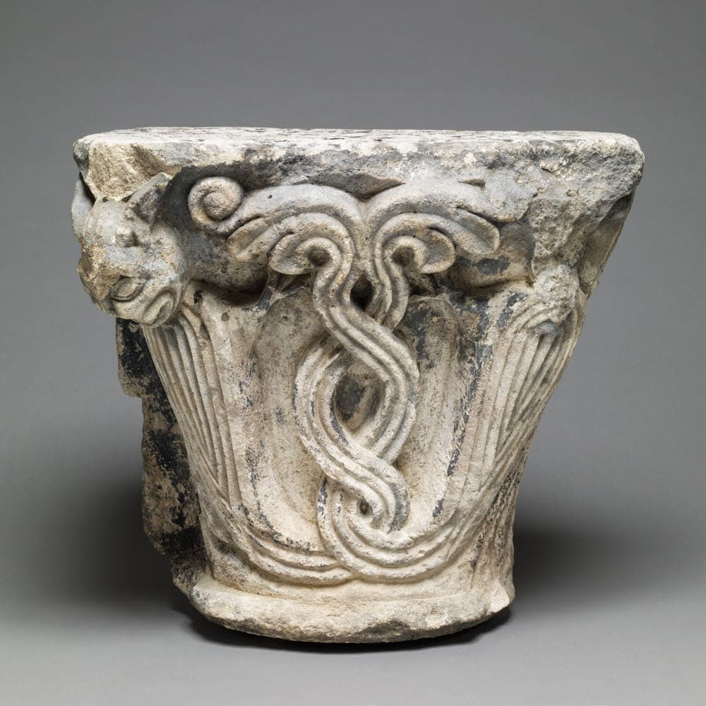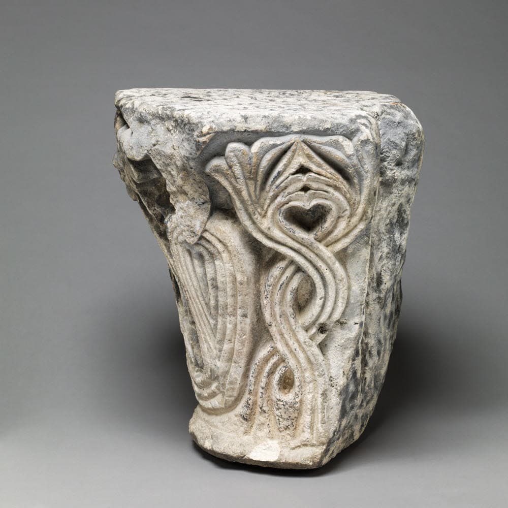 Chapiteau d'applique décoré d'entrelacs, de palmettes et de têtes de monstres